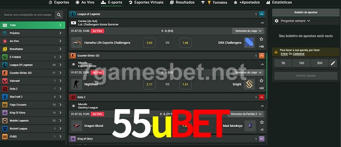 O 55ubet oferece uma grande seleção de opções de apostas em e-sports com probabilidades competitivas